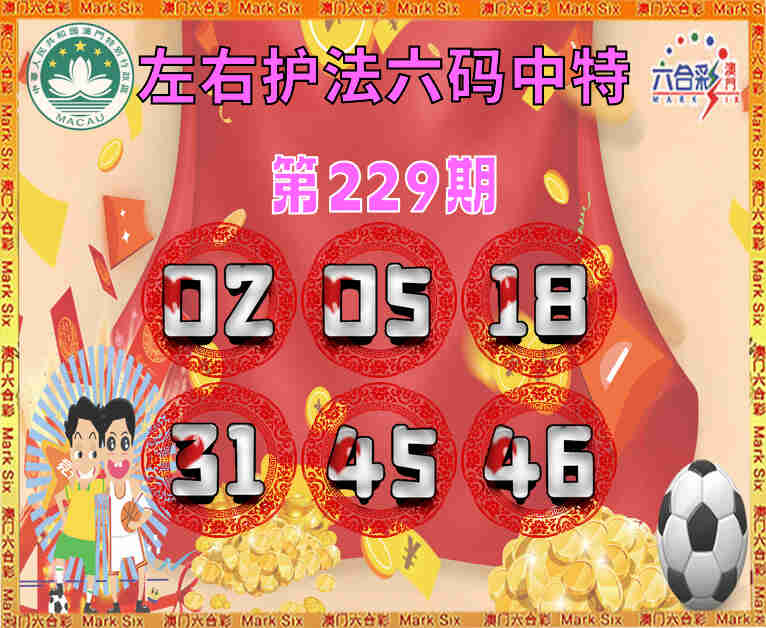 229期: 左右护法 🏃‍♀️六码中特🏃‍♀️【02.05.18.31.45.46】开:02